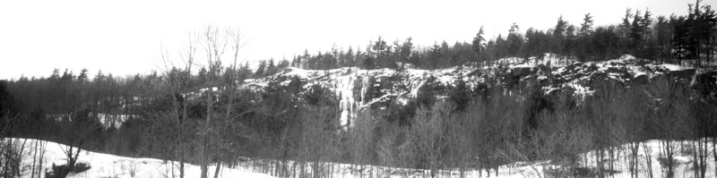 Men With Guns: Simeon at the start of Men with Guns; the route ascends the runnel of ice above Simeon's head |
