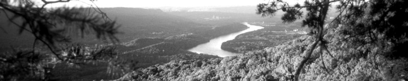 Looking north from the top of the cliff over the fall foliage with the Tennessee River in the background |