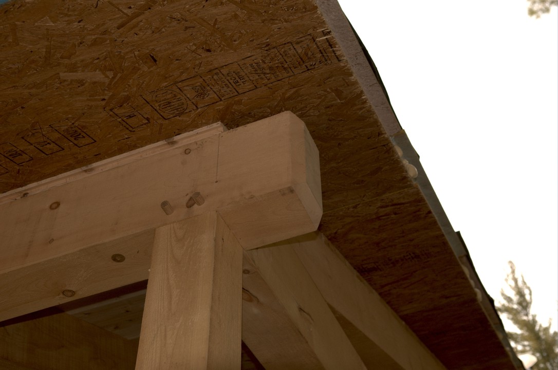 Closeup of timbers on the back porch
