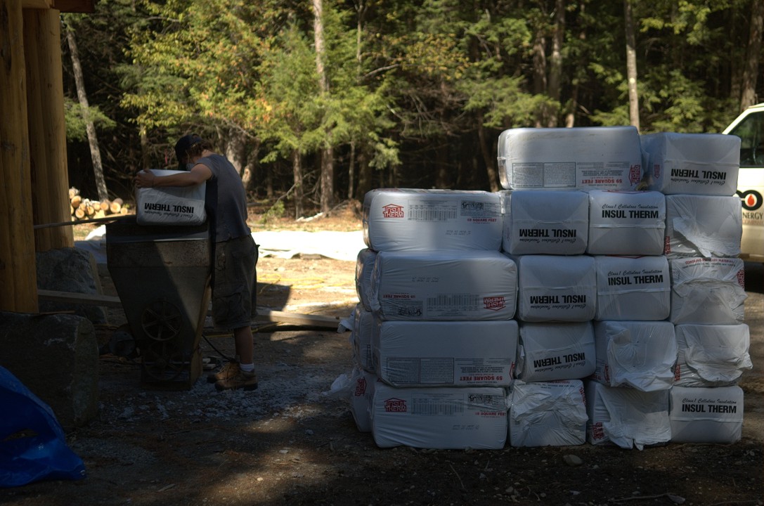 Bales of cellulose await loading into the hopper