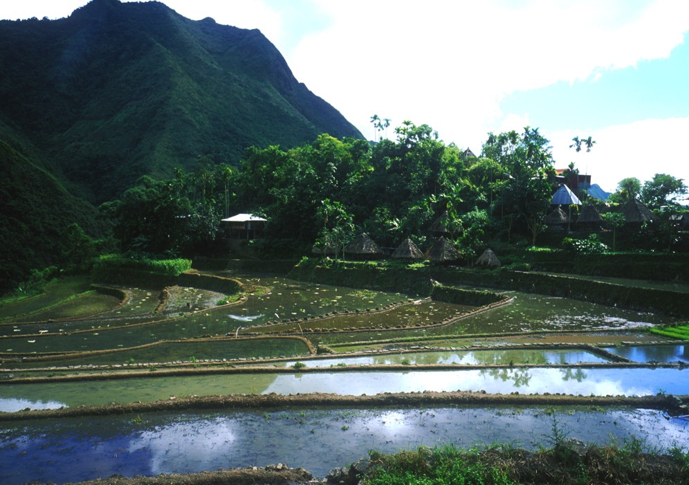 Rice terraces and some traditional huts in Batad; we passed this on our way to Tapplya Waterfall