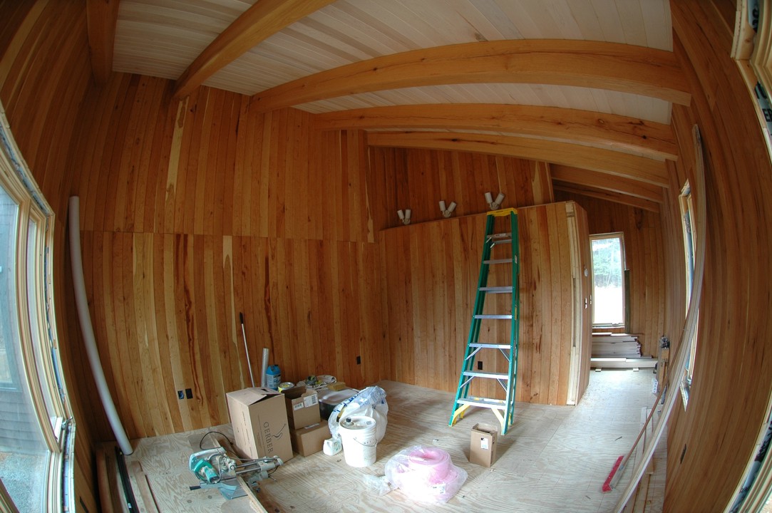 A view of the bedroom closet with the new canister lights installed on the ceiling above