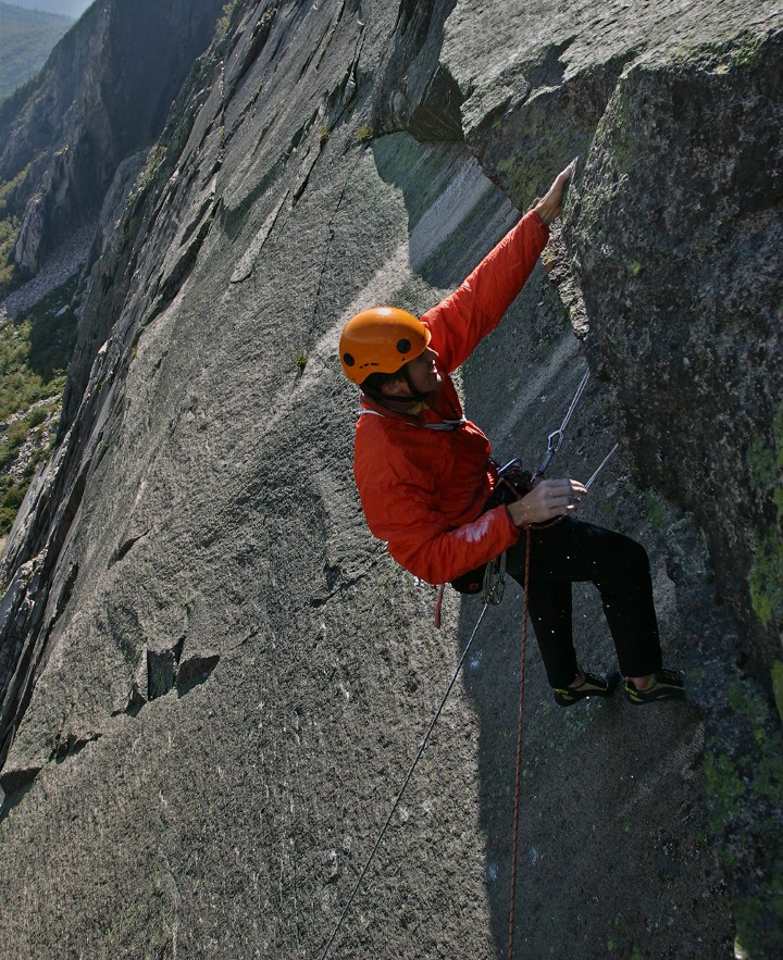 Nabbing the jug in the roof on the 5th pitch