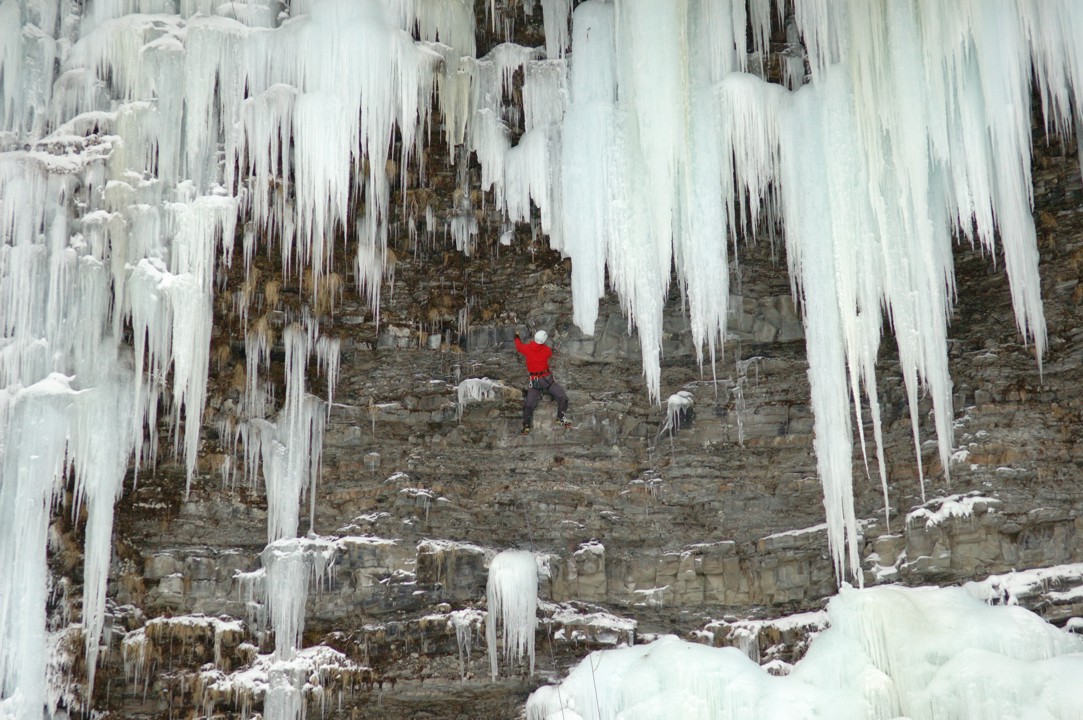 Bones dry-tools the rock to reach the free-hanging curtain