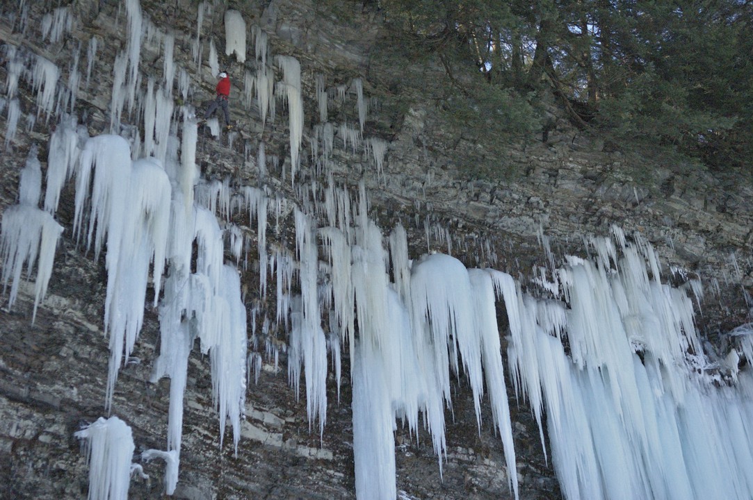 Bones climbs the overhanging crux