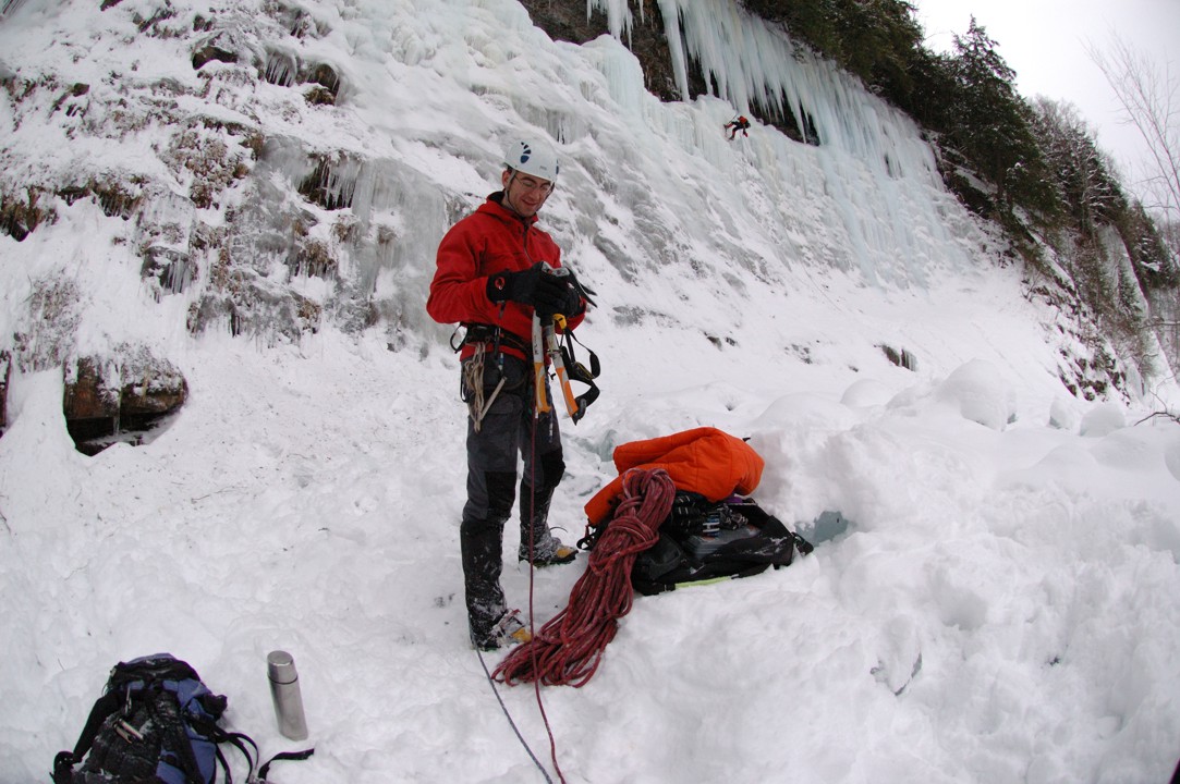 Preparing gear for the first ascent of Chum