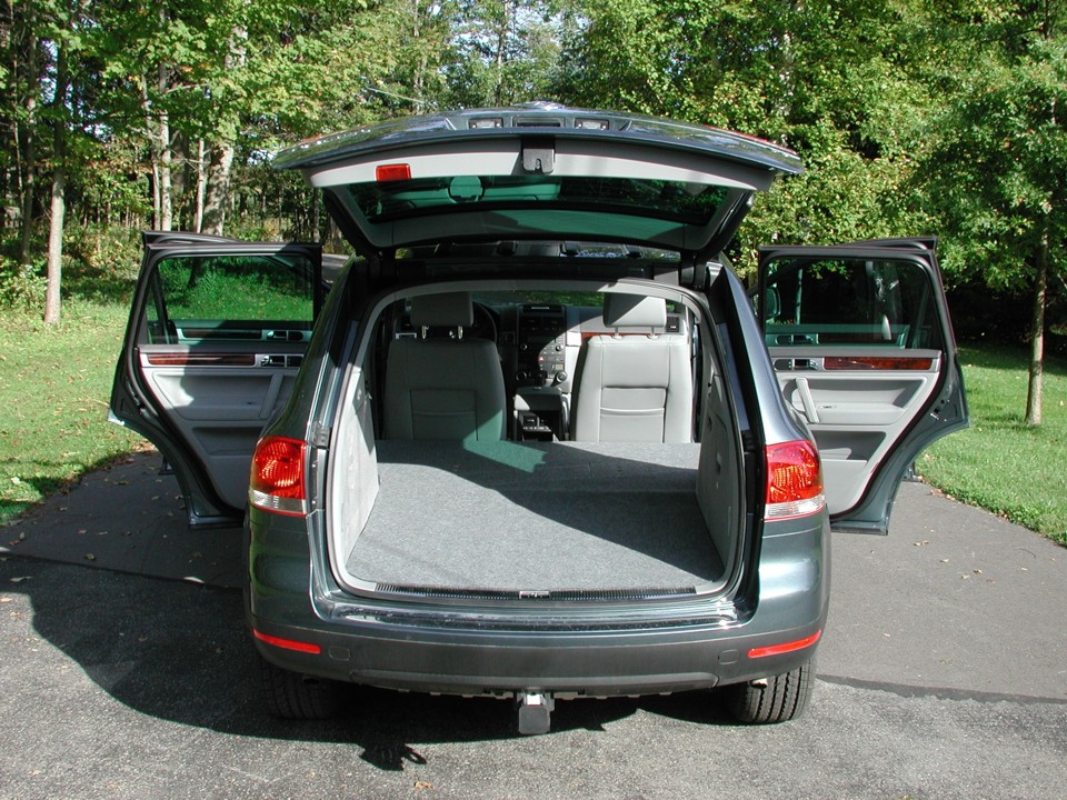 An empty truck seen from the back without the futon
