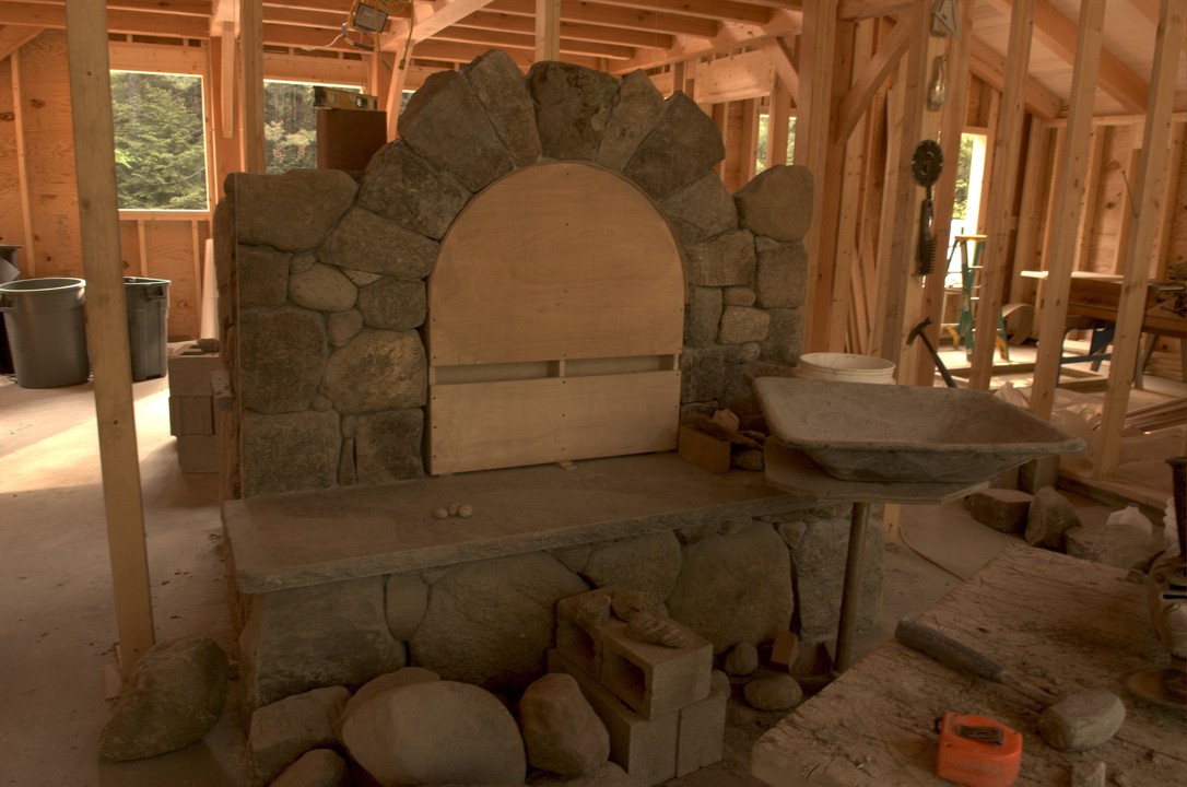 The arch of the fireplace opening, with the wood support in place