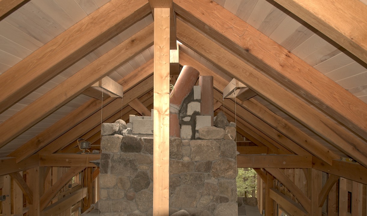 Chimney from the mezzanine with the temporary ridge pole support still in place