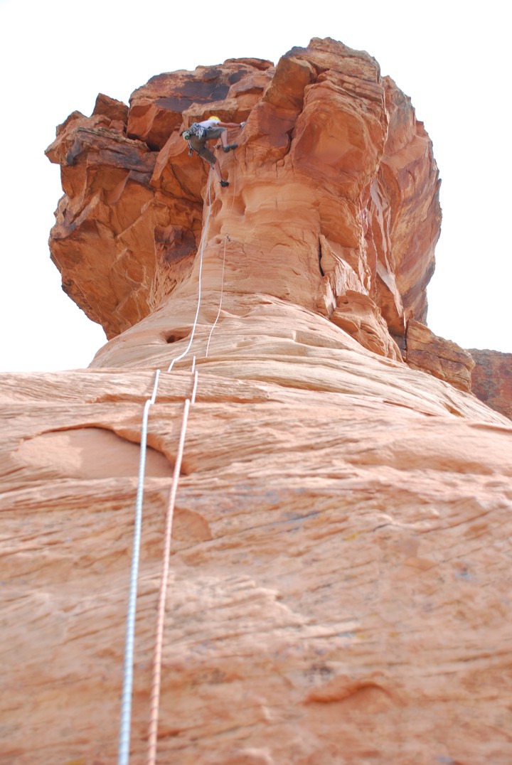 Hard pulling over the overhang leads to a good ledge and fixed anchor