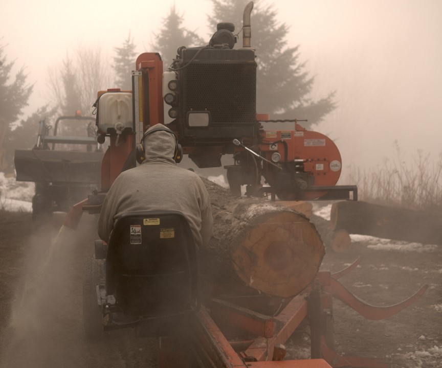 Partway through a cut on a virgin maple log