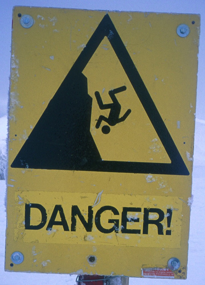 Danger sign at the top of the cliff