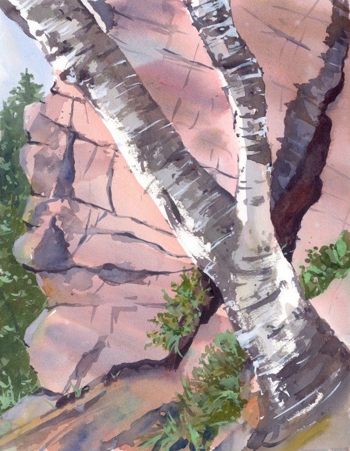 Birches at the base of Geronimo -- water color