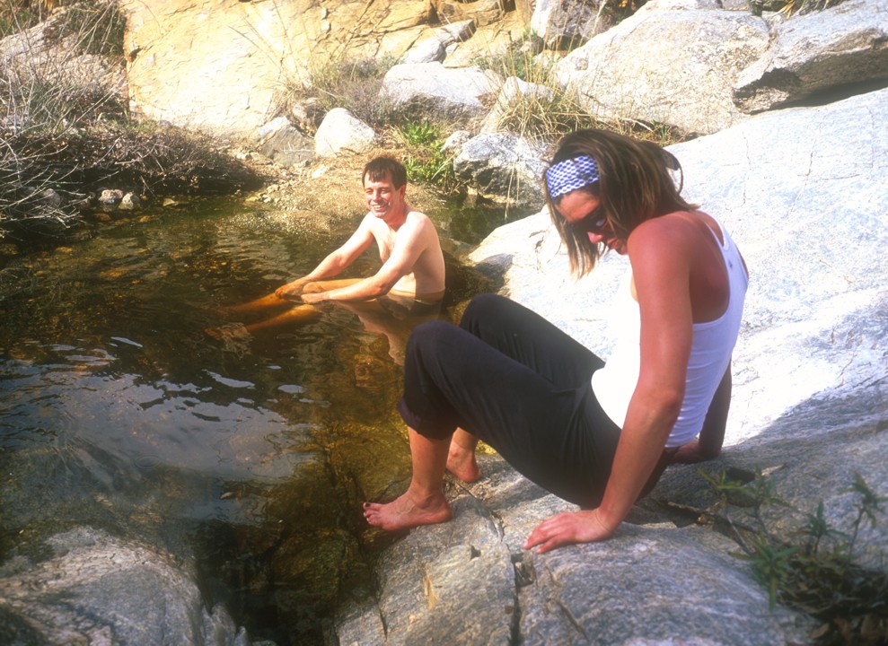 Eric takes a dip in the brook while Lori gives him "alpine curtesy"