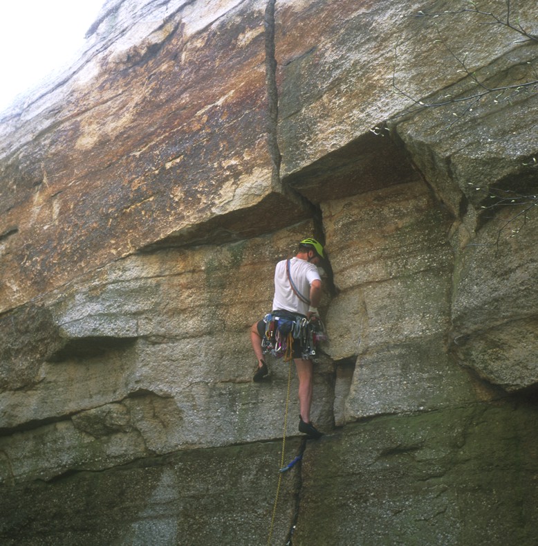 Below the crux of the hidden off-width crack at Lost City; we didn't make it this go