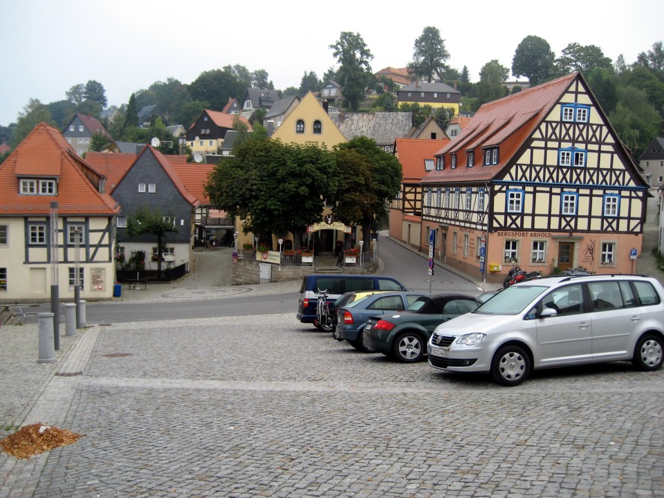The main square of Hohnstein; Bernd Arnold's sports shop is on the right