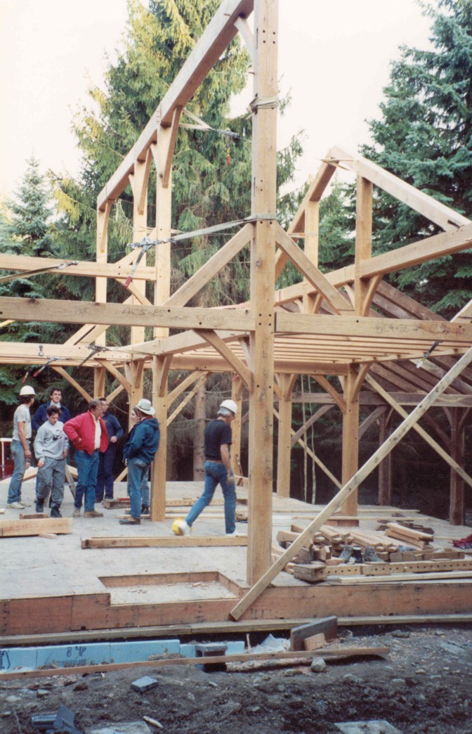 Everybody standing around during the house raising