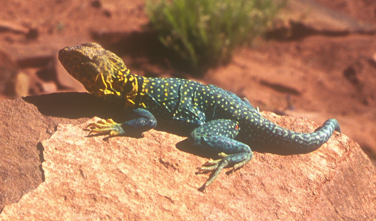 Closeup of a yellow-headed (or "eastern") collared lizard