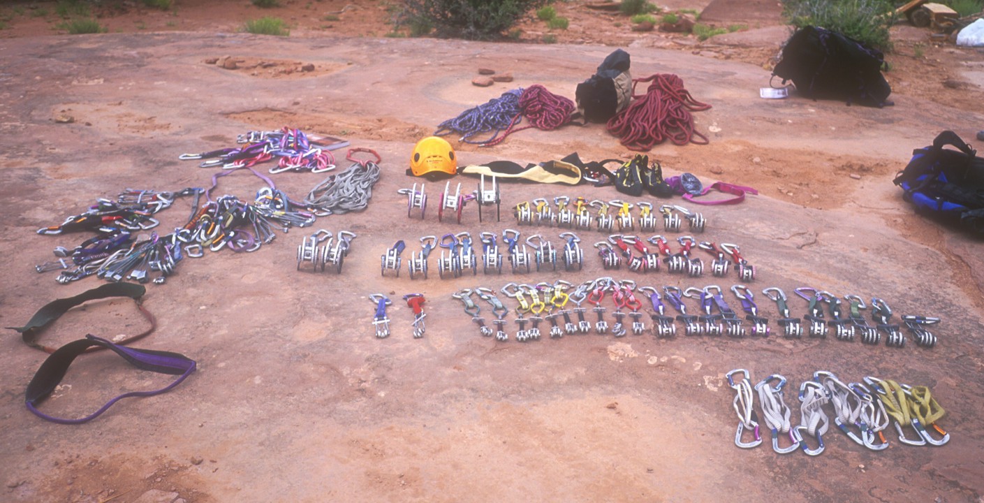 A typical Indian Creek rack featuring lots of same-sized cams