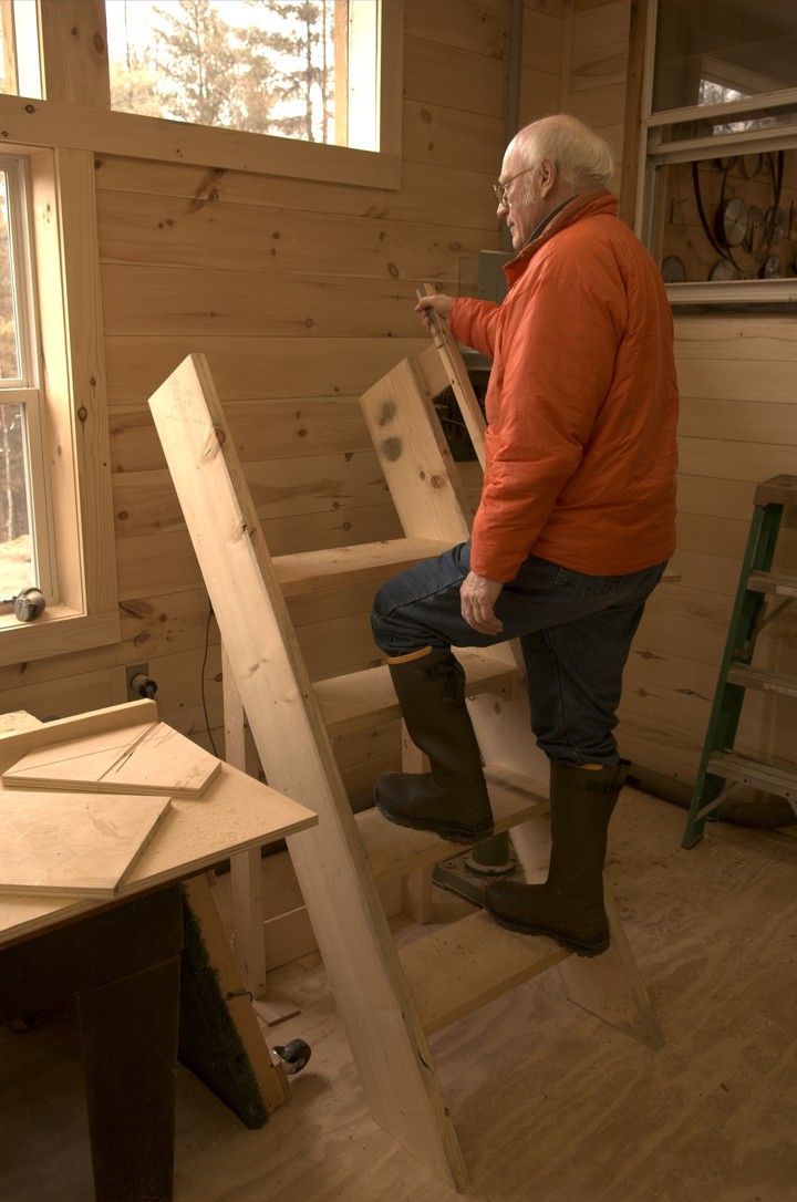 Jack tries a mockup of the stairs that Steve built