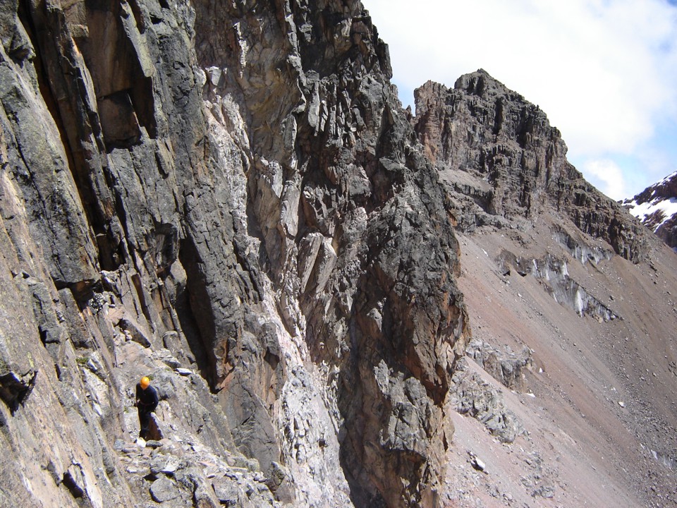 Zigzagging up ledges at the start of the route