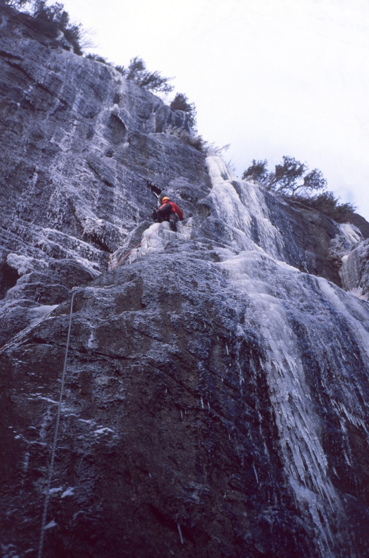 Jim climbs the first ascent of Keymaster, a mixed route just right of Gatekeeper