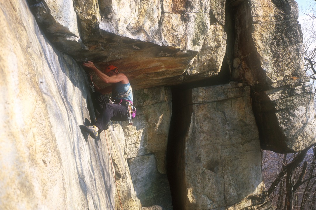 Series 1: Starting the difficult traverse moves beneath the roof