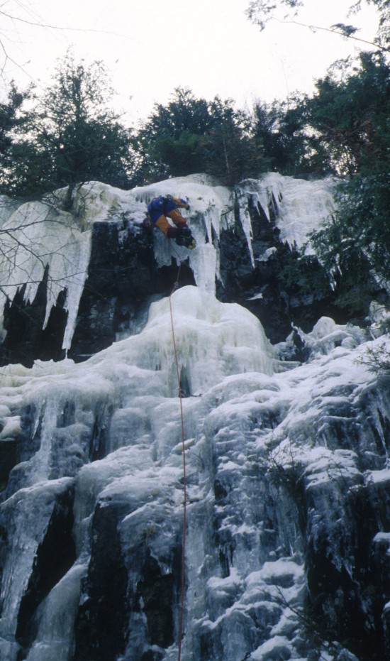 Topping out on the crux in thin conditions