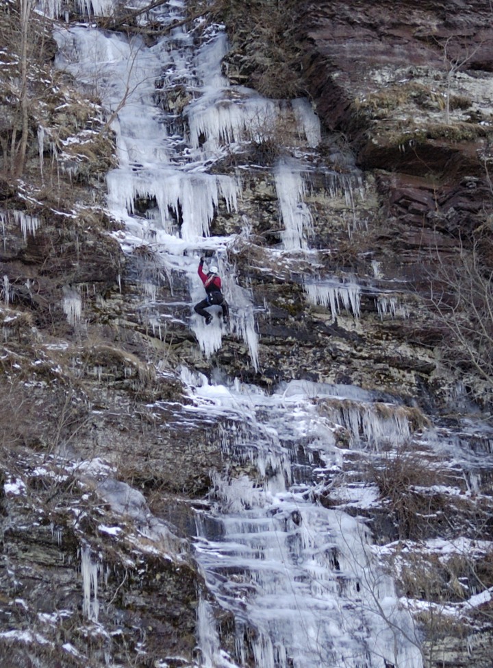 Getting established on the hanging dagger in the crux