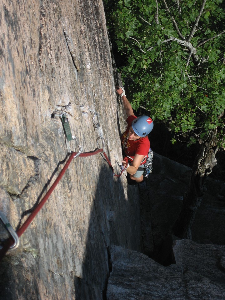 One of the better cracks at The Precipice, although one can step left at several points to reduce the pump factor