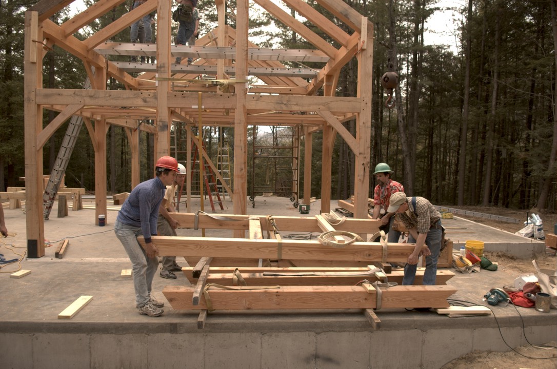 Four strong backs are required to move a rafter subsection