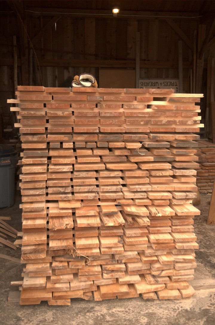 A pile of rough-sawn maple stacked in the barn during milling