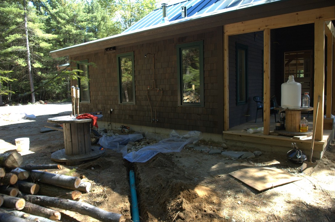 The floor of the outdoor shower is drained via PVC pipe to the hillside