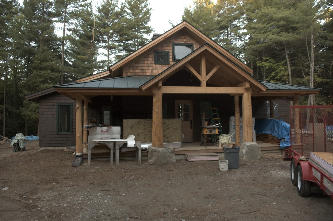 The Hut is stained dark brown (as required by our APA permit)