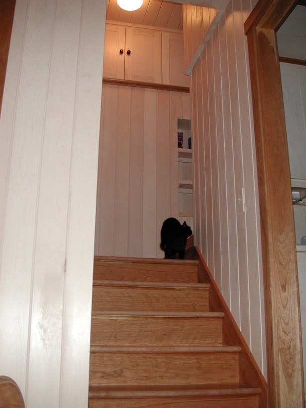 Posey in the stairwell