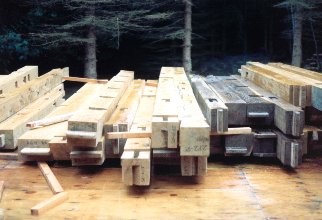 Collection of post and beams before being assembled