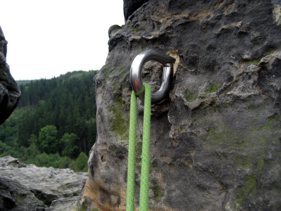 Giant rappel rings; the flat spot on the top is so that you can clip a caribiner to it