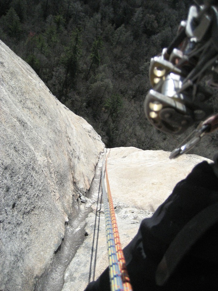 Rappelling a water groove