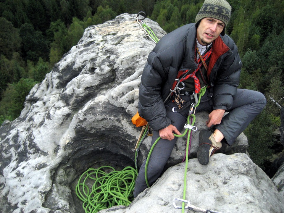 Belaying from a giant hole in the top of the tower