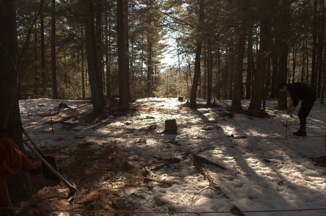 Looking south from the virgin site; stakes and ropes mark the locations of the building