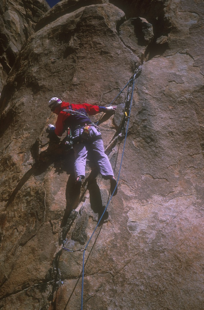Beverly sews up the lower crack, then moves up to the rest alcove