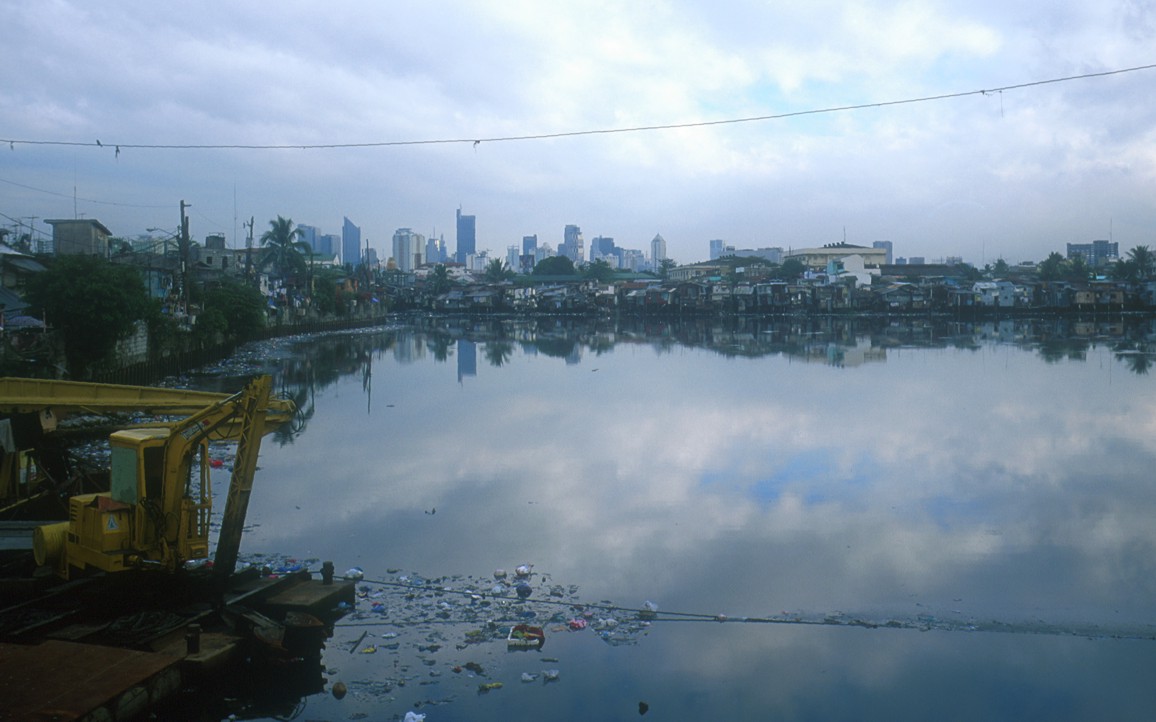 Squatters encroach the river near Manila
