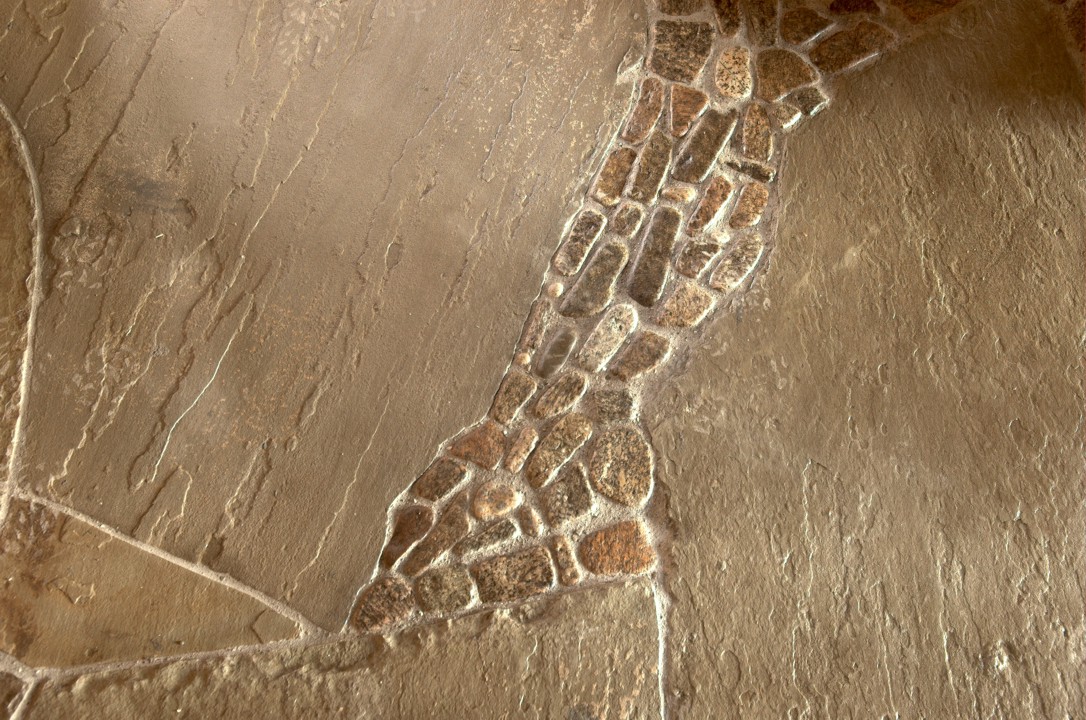Another pebble section in the floor; the pebbles were collected by hand from the Boquet River
