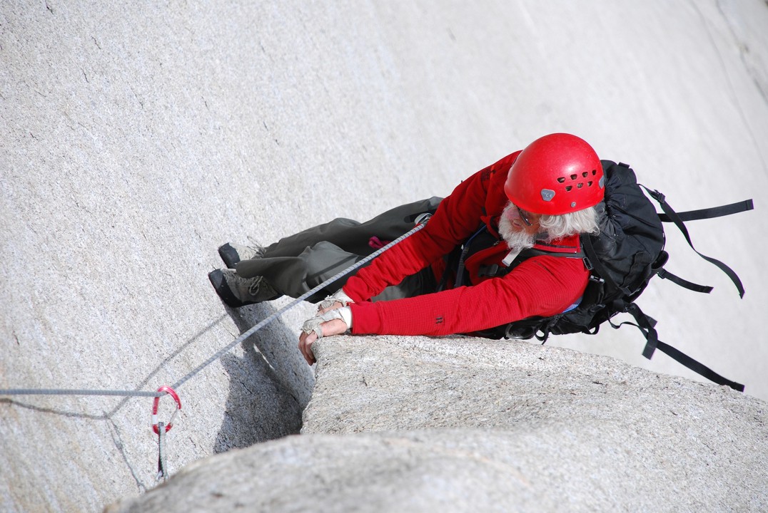 Tommy follows the undercling pitch with a full pack of gear, no less