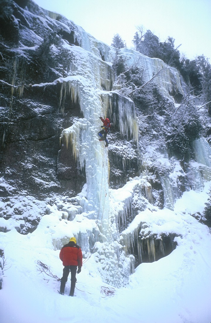 Climbing a pillar on the east side of Avalanche Pass before one reaches the lake; the climb is broken into two parts -- the initial pillar to a ledge, then a rock overhang