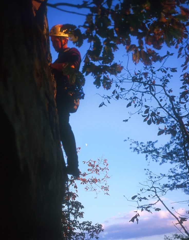 Sunset and still can't get enough; Tad climbs the runout arete of Crash Position