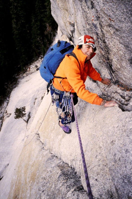 John reaching the first belay on West Crack