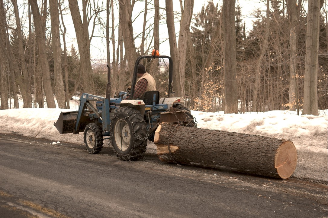 Zack skids a beautiful cherry log down the road