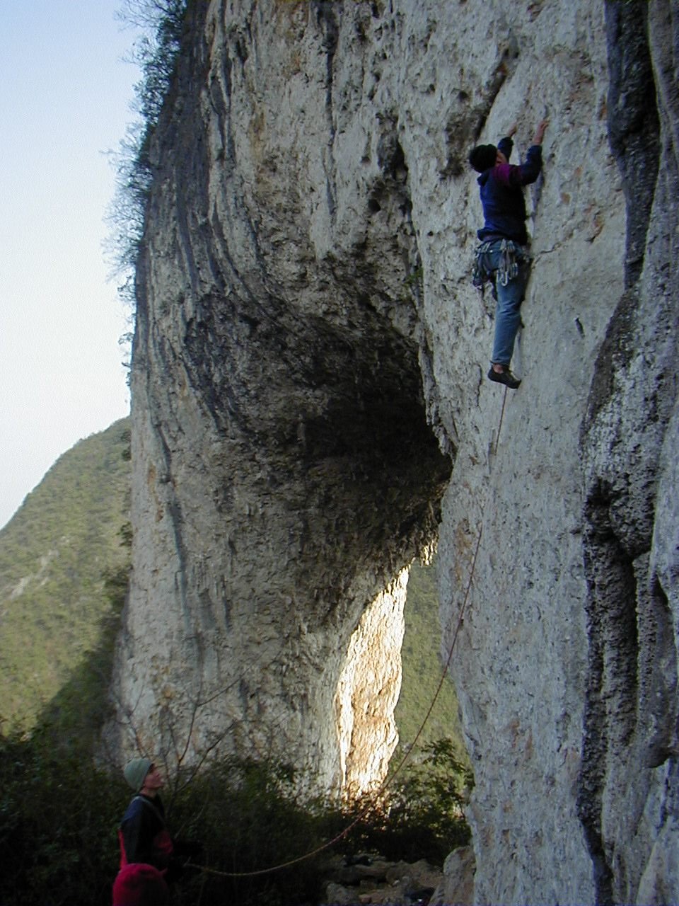 James leading the 5.10a next to the arch (easiest route at Moon Hill)